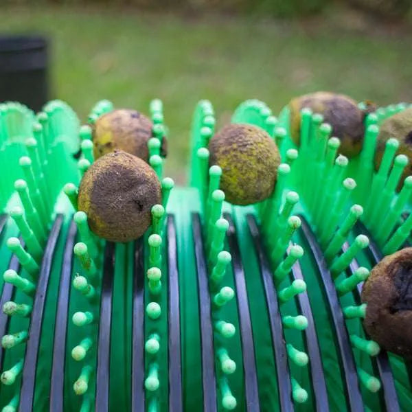 Ce ramasseuse noix noires haute performance rend la récolte rapide et sans effort. Avec une largeur de ramassage deux fois supérieure à celle de notre modèle 18", cette unité plus grande est idéale pour les grandes pelouses et les zones fortement couvertes de noyers noirs, vous permettant de ramasser plus rapidement et avec moins d'effort. Dégageant un passage de 90 cm de large, il ramasse facilement les noix noires et les dépose dans des paniers amovibles – plus besoin de se baisser, de ratisser ou de ramasser constamment. Lorsque les paniers sont pleins, il suffit de les retirer, de les vider et de les remettre en place pour continuer.